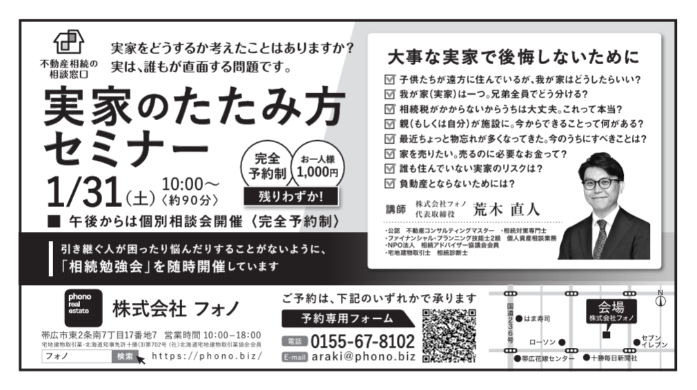 【相続勉強会】実家のたたみ方セミナー [1月31日(土)開催]完全予約制