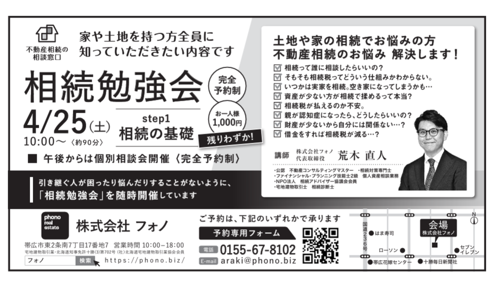 家や土地をお持ちのすべての方に知っていただきたい、相続の基礎が学べる勉強会を開催します。