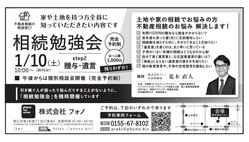 【相続勉強会】STEP2 贈与・遺言 [1月10日(土)開催]完全予約制
