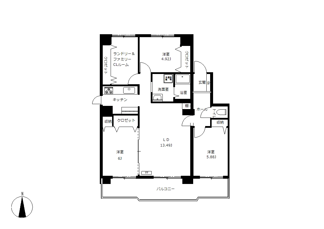 3LDK+ランドリー&ファミリークローゼットルームとして使える間取りに整えました。